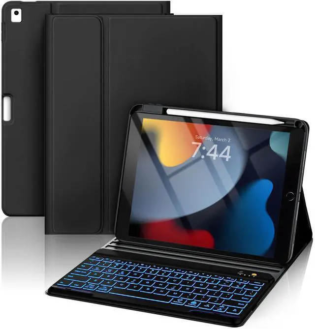 The backlit typing experience is more enjoyable and effortless ^^ Ultra - thin Detachable Wireless KeyboardOnce this keyboard is connected to your iPad 9th via Bluetooth for the first time, it will automatically connect during subsequent uses, transforming your iPad into a laptop in an instant! It supports Windows, IOS, and Android systems. The ultra - thin 6.2 mm - thick keyboard can be firmly attached to the case by magnets or be completely detached ^^ Multiple Viewing AnglesThe Keyboard case for iPad Air 3rd Generation has three built - in different support angles at the bottom of the case, ensuring comfortable viewing angles - for typing, reading, gaming - providing you with amazing versatility. It can be easily adjusted to the most comfortable angle for you. It's perfect for working, writing, or watching videos at work, school, during travel, or at home ^^ Superior ProtectionThis 10.2 '' iPad keyboard case has a non - slip design and offers 360 protection. It guards against scratches, dents, and drops, and also resists fingerprints and impacts. Precisely cut openings allow full access to ports, sensors, etc.