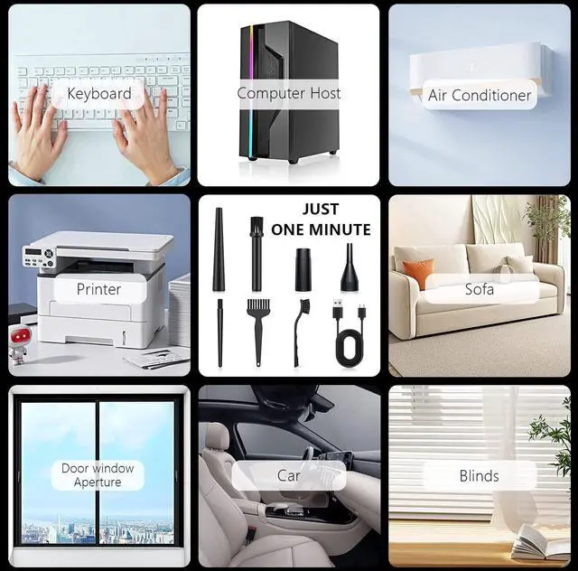 ^^ Multi-Use Compressed Air DusterElectric Air Blower Has A Total Of 6 Attachments And It'S A Multi-Use Tool For Cleaning All Dust And Particles In The Equipment. The Electric Air Blower Is Perfect To Clean Computer Keyboard, Laptop, Camera, Car Seat And Blinds Etc. The Thin And Long Nozzle Makes It Easier To Clean Corners. The Air Dusters Can Even Be Used In Products That Need To Be Inflated, Such As Inflatable Beds, Lifeboats, Etc ^^ Friendly Customer Service Electric Air Duster Battery Protection Design, Do Not Charge When The Machine Just Finished Using, The Battery Temperature Is Too High, Please Wait Ten Minutes To Cool Down Before Charging.