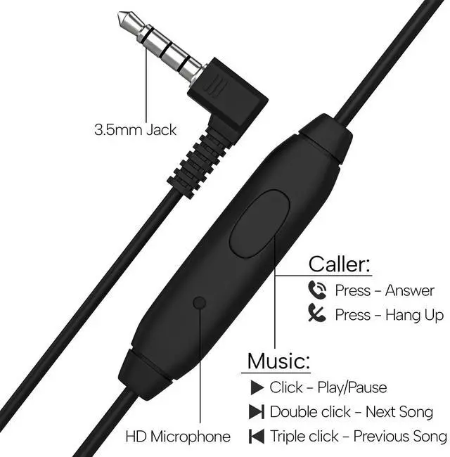 ^^ Retractable and adjustable headband ensures optimal fitting. Perfect design that adjusts to fit every head shape. Whether you have a small or large head, you can adjust the headphones fit quickly. All our headphones feature 90 Degree swivel ear cup for easy placement and storage. ^^ Built-In microphone allows for hands-free communication when you wear the headphones, high-definition calls, and no-noise speech. The one-touch multi-function button at the microphone allows you to play, pause, answer/end calls, and skip/previous song without picking up the phone, making operation very convenient.