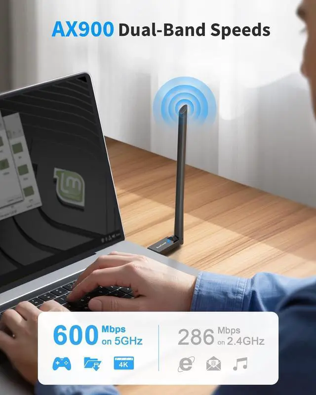 Linux: Upgrade your Linux devices with the AX900 WiFi 6 Linux USB adapter. Advanced WiFi 6 technologies including OFDMA, 1024-QAM, and MU-MIMO deliver faster speeds, lower latency, and more stable connections ^^ Works with