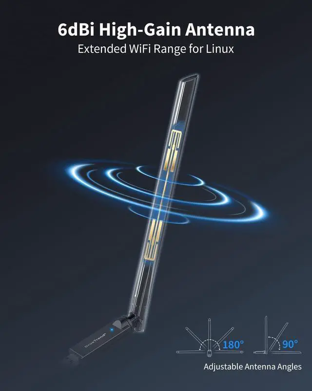 External Antenna: The Linux compatible WiFi adapter features a 6 dBi high-gain antenna to ensure strong, stable signal reception, keeping your Linux devices connected even in hard-to-reach spots at home ^^
