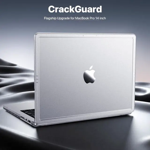 CrackGuard TechFlagship Upgrade, Molecular-level toughness to prevent corner cracks. 2-Density matte edges + infused elastic micro-particles, disperse corner stress and tackle cracking at its root ^^ Seamless Fit, Device-Safe PrecisionCompatible for MacBook Pro 14 inch 2025-2021 Release with M5 M4 M3 M2 M1 Pro /