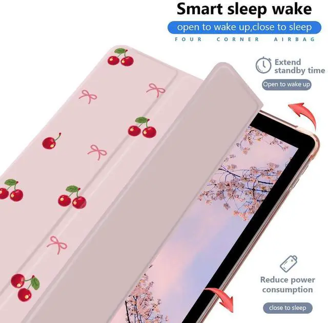 [Compatible with iPad 9th/8th/7th Generation] This protective case with pink cherry pattern is designed for iPad 2019/2020/2021, 10.2 inch, (Model: A2602/A2603/A2604/A2605/A2270/A2428/A2429/A2430/A2197/A2198/A2200).