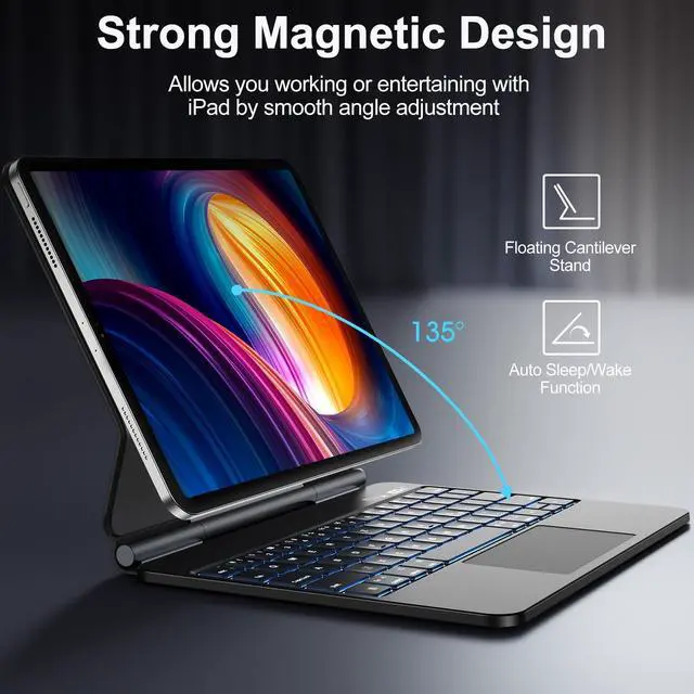 Magnetic Design: the floating cantilever design allows your iPad Air 11/iPad Pro 11/iPad Air 5/4 to float stylishly over your keyboard and gives you the perfect angle by opening the case to free your hands ^^
