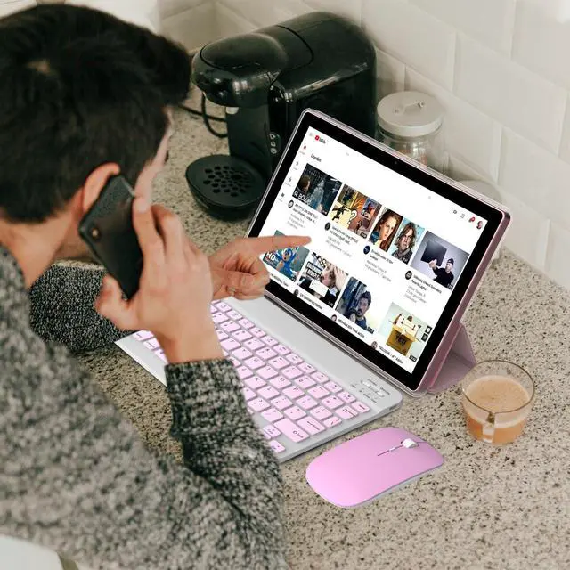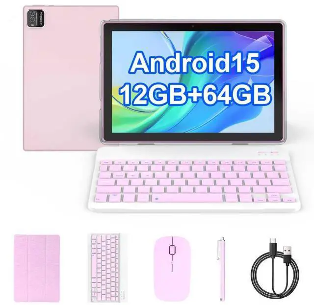 Performance Tablet with Keyboard This 2 in 1 tablet with 12GB RAM (4GB fixed memory+ 8GB virtual memory) 64GB ROM (1TB expandable). large storage space for your daily entertainment and work needs. 10 inch tablet with case, support bluetooth, FM, and WiFi. Latest android 15 with powerful processor, 1.8G hz quad-core speed, you can enjoy a smooth experience. ^^ Computer & Tablet Mode This computer tablet, Its perfect combination of computer and tablet pc. Tablet with keyboard, wreless mouse and foldable protective case, it can flexibly turn tablet into a laptop mode.