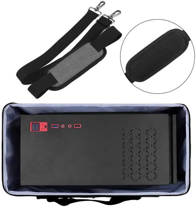 NOTE: Please check the size before purchasing it. ^^ Multiple pockets design can well organize your computer peripherals, like keyboard, mouse, wires, hard drive, headphone, radiator, etc.. ^^ The Interior foam padded insert, removable foldaway cushioned pad and 4 bottom feet pads will reduce the friction with the ground and protect computer and accessories from damage. ^^ PC tower case features with adjustable removable shoulder strap and reinforced padded handle strap make it easier to carry PC computer in transit. Large opening for easily putting in and taking out. ^^ CURMIO PC travel case is made of thick nylon material, water-resistant, scratch-resistant and wear-resistant, which will allow a long time use.