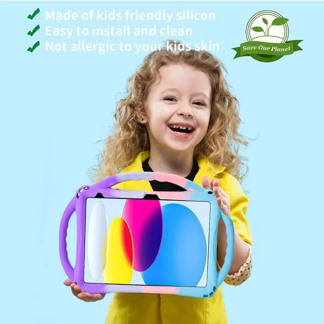 Designed for iPad 10th GenHigh Quality Silicone Childproof Case designed for new Apple iPad 11th Generation 11 inch 2025 new release, iPad 10th Generation 10.9 inch 2022 (Model No. A2696, A2757, A2777), it doesnt fit iPad 10.9 inch Air 4th and 5th Generation ^^ Including Screen Protector& StrapThe durable case comes with 0.33 mm thick premium tempered glass with Arc edges, it fully protects your new iPad from scratch and drop. The strap is extra bonus, your kids can enjoy his/her journey by using the strap hanging your iPad on the car headrest while traveling ^^ Kids Friendly Silicon The shockproof cover is made of kids friendly silicone materials.