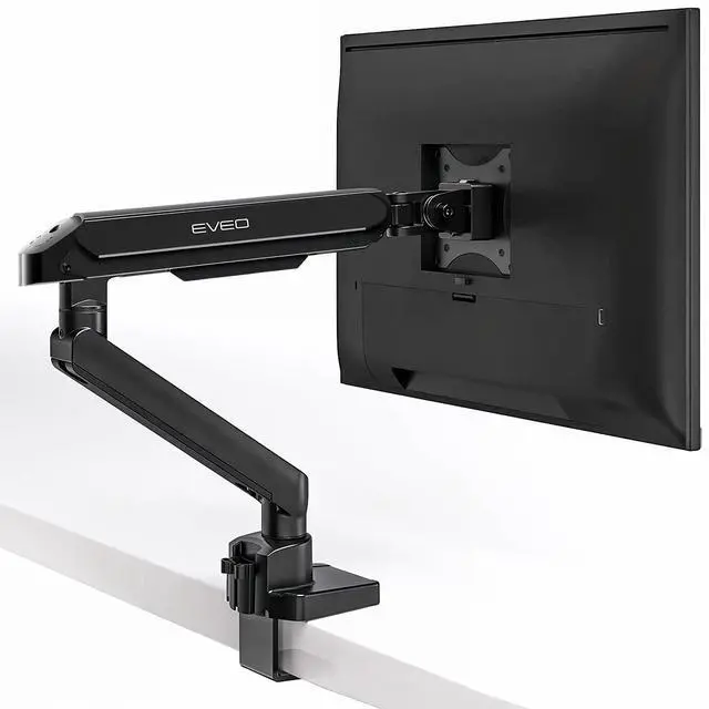 Monitor Arm 34 inch - Enhance your workspace with the EVEO monitor stand, a premium 34 inch Monitor Mount, single monitor arm for single monitor setups, promoting a clean aesthetic by elevating your screen. ^^ Experience hassle-free installation with the EVEO monitor arm desk mount. Our single monitor mount installs in minutes, attaching securely to your desk for maximum stability.