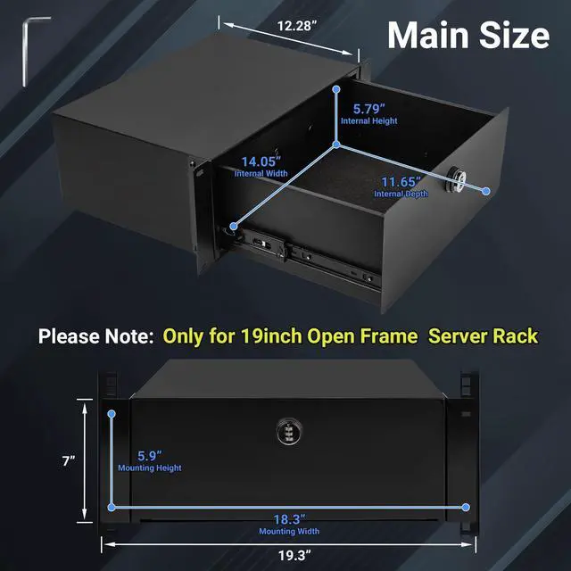 Adequate Space: With an interior space of 11.65D x 14.05W x 5.79H, the 4U rack drawer can hold up to 22 lbs. for your storage needs ^^ Durable and