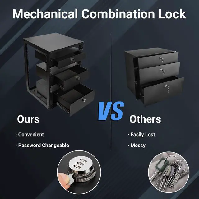 Secure Storage: Our Server rack drawer is equipped with a mechanical combination lock, which provides the flexibility to change the combination as opposed to a key that can be easily lost ^^