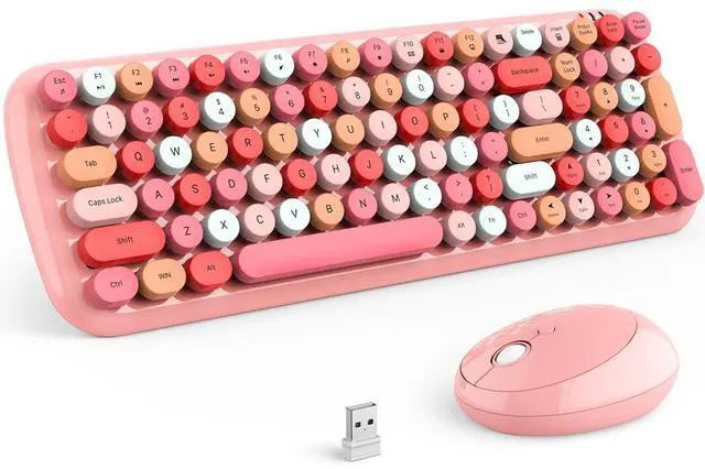 Wireless Keyboard and Mouse Combomost popular light pink color of 2023, to attract more people's eyes, give you a different vision, enjoy a different keyboard experience, create a colorful desk, and be a pleasant mood for you! ^^ Floating Button Design & Detachable KeycapsAll buttons can be disassembled, put in water to clean, and also equipped with a brush to clean the garbage on the keyboard. The floating button design gives you a soft and quiet feeling, and takes you back to the most original type of Typewriter Style! ^^ 2.4G Wireless Techplug & play, 35 feet working range, 2-in-1 nano receiver, no need to install other software, no delays or Drop the line, Make your desk surface more neat and tidy, Keyboard or mouse can be used separately, just insert a single USB Receiver to use your Wireless Keyboard Mouse Combo! ^^ Wide Compatibilitymouse and keyboard are perfectly compatible with Windows 7 / 8 / 10 / XP / ME / 2000 / Vista operating system (USB 2.0 port).