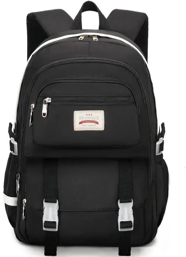 The front combination pocket offers 2 pen sleeves, 2 open pockets for a cell phone or other items, and an iPad pocket. Exterior - Features 2 side pockets for water bottles and umbrellas, 1 front zippered pocket for easy access to essentials, and a back zippered pocket. ^^ Durability and Comfort-Our school backpack is built to last, made from high-quality that can withstand the wear and tear of daily use. The padded shoulder straps and back panel provide maximum comfort, reducing strain on your child's shoulders and back, making it perfect for long trips or school days.