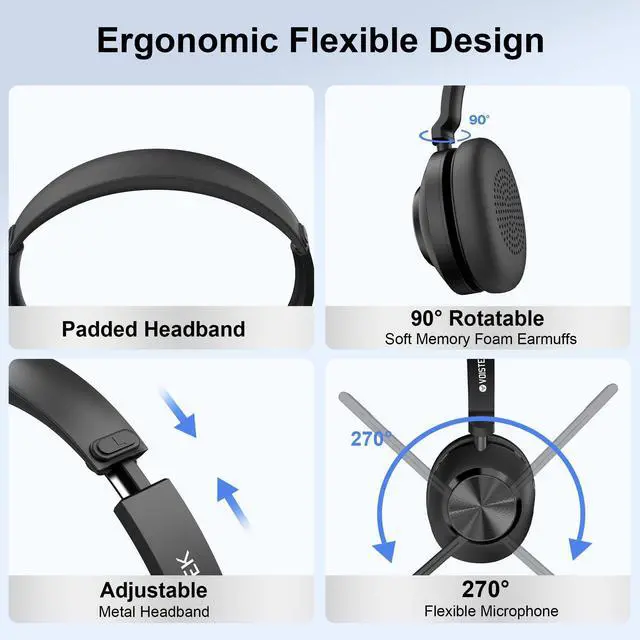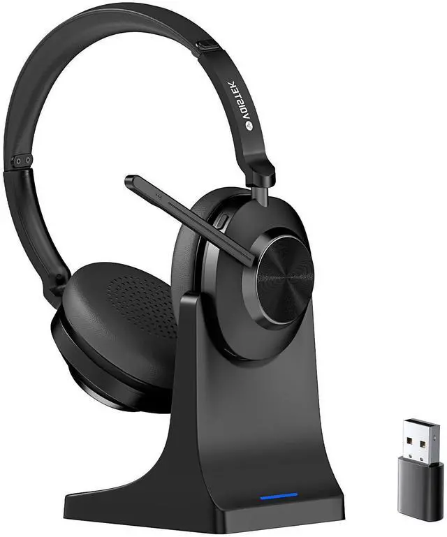 Noise Cancelling Microphone Clear Voice for Work & CallsDual beamforming microphones reduce background noise, making your voice clear and professional in office meetings, Teams, Zoom, or Skype. Ideal wireless headset for PC, laptop, and online classes. ^^ Easy Dual Connectivity OptionsEnjoy stable connections via Bluetooth or included USB A/C dongle. Switch smoothly between computer and smartphone for work, office calls, or hybrid meetings without interruptions. ^^ Premium Audio Headphones with Microphone for PC OfficeEquipped with 40mm drivers, these wireless headphones deliver rich and clear sound for calls, online teaching, and multitasking, ensuring every conversation is natural and productive.