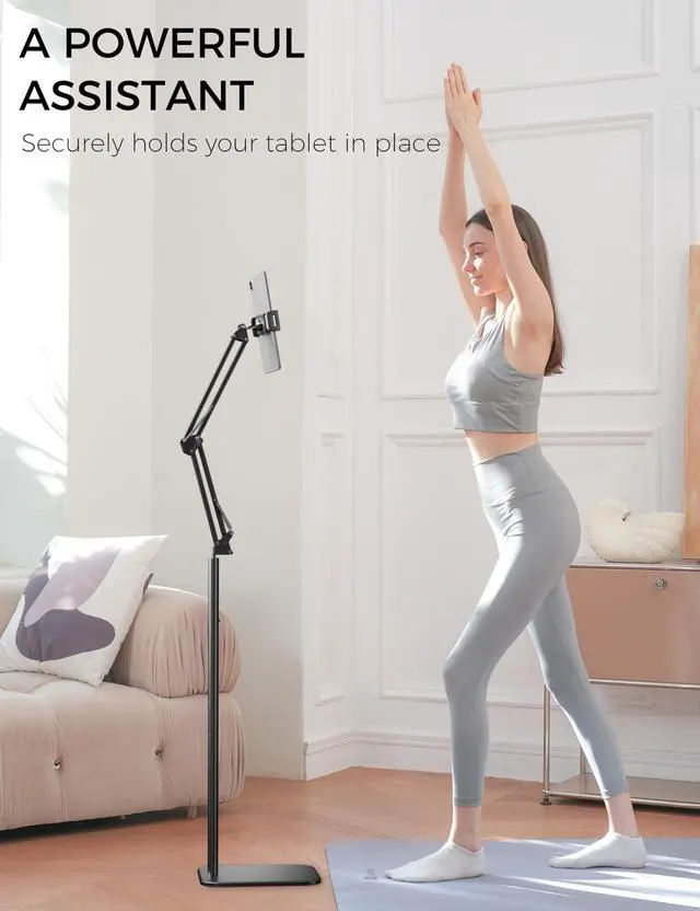 Free Your Hands: Whether you're resting or busy, our flexible tablet stand floor version will free your hands and help you find the perfect view to watch movies, live streams, listen to music, read e-books, view music scores, read recipes, and watch tutorials, among other activities.