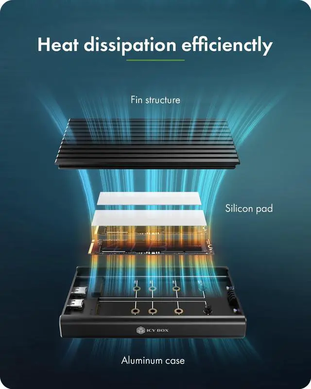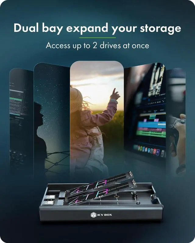 ^^ Toolless Design: The dual-slot nvme pcie m. 2 ssd reader is 100% tool free. Its rubber fixation system securely supports all four SSD sizes, making upgrades simple and efficient. Driver free, plug and play. ^^ Multi-OS CompatibilityThis product works with various devices and platforms, including macOS and Windows, making it easy to use across different systems. ^^ What You GetIcy Box's 26-year German-engineered storage - 20GB M. 2 NVME SSD Enclosurer, USB-C Cable, Power cable, Thermal Pad, Rubber fixation24month warranty and lifetime expert support.