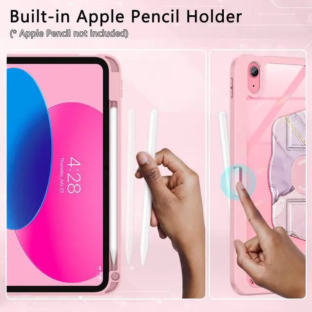 Number: A2696/ A2757/ A2777 / A3162) ^^ [Faux Leather & Transparent Clear Back] - Faux Leather with delicate touch, stain-resistant and washable. Crystal clear hard PC back with TPU frame prevents your new iPad a16 11th/10th Gen from scratching and bumping, offers full body protection ^^ [360 Degree Rotating] - This case for iPad a16 2025 can swivel both vertically and horizontally, non-slip lining material and grooves can set up multiple stand angles stably to reach your most comfortable viewing or typing ^^ [Built-in Pencil Holder] - No Pen included! Support Pencil Charging and provide pen holder nicely to secure your pencil, you can easily carry and use the apple pencil at any time.
