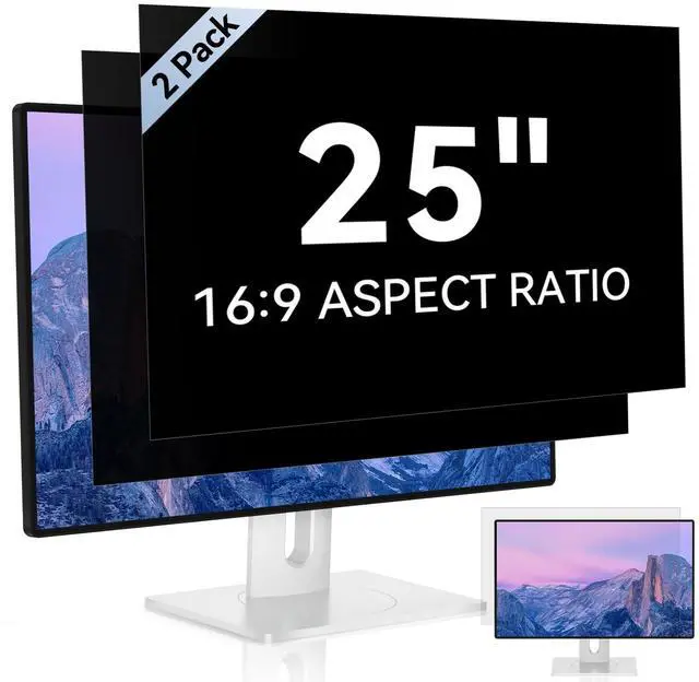 PRIVACY FILTER DIMENSIONS Width: 21 13/16" ( 21.8 inches/554 mm), Height: 12 1/4" ( 12.3 inches/312 mm) - Aspect Ratio 16:9. Mamol computer privacy filters are designed to be perfectly compatible with HP, Samsung, Dell, Lenovo, Acer, Asus, LG, ViewSonic and other brands of monitors. Please check the width and height dimensions of your computer screen before ordering. If you have any questions about the dimensions, please contact us. ^^ ENHANCED PRIVACY PROTECTIONMamol 25 inch computer privacy filter keeps your electronic information confidential, making it excellent for use in high traffic areas. the computer privacy screen 25 inch is designed with advanced microlouver technology to block visibility at around 30 degrees and black out screens completely near 60 degrees. ^^ EYES PROTECTION This blackout privacy screen greatly reduces eye strain and minimizes potential hazards to vision. It filters 99.9 % of UV rays and suppresses 98% of blue light. As a reversible 25 inch privacy screen filter: The glossy side of the protector provides extra clarity and greater privacy, and the matte side minimizes glare and distracting reflections. Satisfy your different daily uses as needed. ^^ BETTER HD CLARTIYMamol 25 inch computer privacy screen Shield adds an extra layer of AR Ultra HD light transmission compared to others. It maintains the high definition of the screen without sacrificing too much screen brightness. It won't reduce the brightness and cause eye fatigue because of the privacy screen installed on the screen. ^^ ANTI SCRATCH & WASHABLE Our privacy anti-glare Monitor film has a surface enhancement layer to protect the privacy filter from scratches and fingerprints. It is washable and reusable. Even after prolonged use, you will get a brand new privacy screen for your desktop computer monitor after cleaning. Very Durable! ^^ TWO INSTALLATION OPTIONS 1) Apply clear adhesive stickers directly on the monitor privacy screen filter to hold it in place on the monitor screen itself; 2) Install these plastic slide mount tabs on the outer rim of the screen to hold the privacy screen in place (for computer screens with a raised bezel only), allowing you to slide the filter on and off the screen as needed.