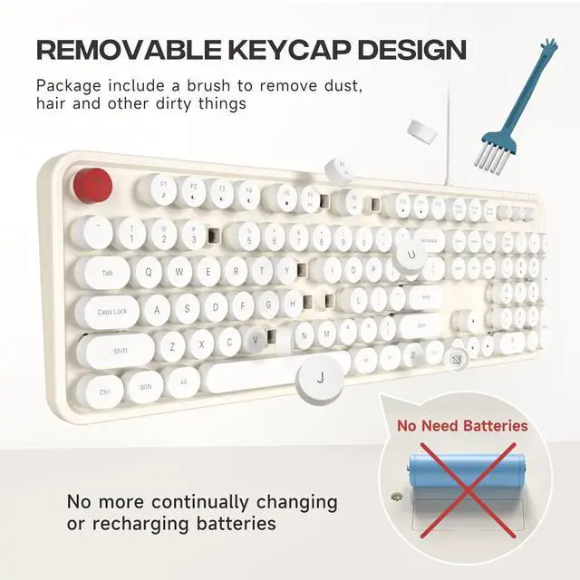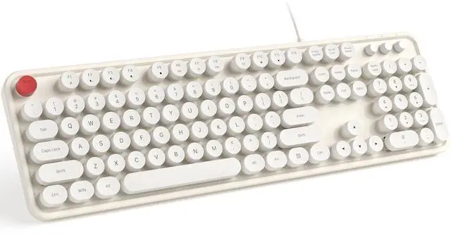 Milk White Wired Computer Keyboard: Modern latest pop retro typewriter wired keyboards aesthetic design, the best choice for your unique cute desktop. Ergonomic keyboard with stand feet and non-slip pads, give you a comfortable typing touch. Standard American keyboard design is suitable for everyone. ^^ More Stable