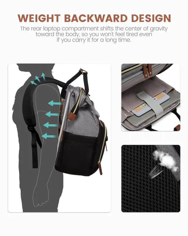^^ ERGONOMIC COMPUTER BACKPACK: Ergonomic design of our womens laptop backpack includes a rear laptop compartment and thick, breathable padded shoulder straps. The design centers the weight closer to your body, reducing shoulder and back strain even when fully loaded. Sturdy shoulder buckles ensure the straps stay in your most comfortable position without slipping.