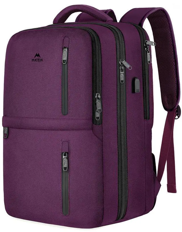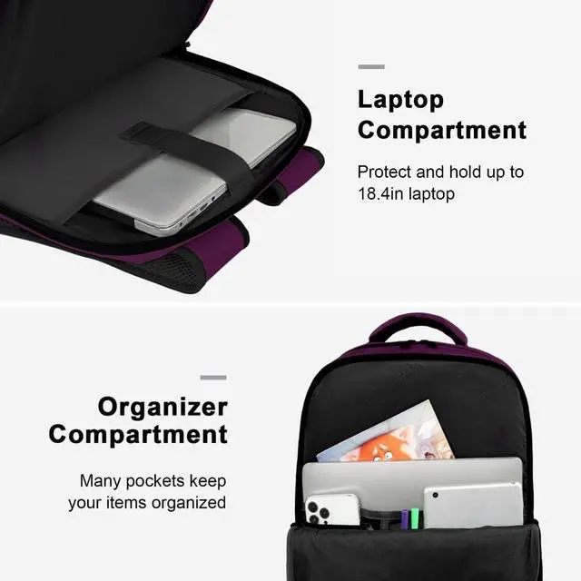 Versatile & Convenient: External USB port with built in charging cable conveniently charges your phone and other electronic devices (pls provide your own portable charger). The shoe compartment at the bottom fits sizes 10-12, keeping footwear separate and odors at bay with breathable venting holes, while doubling as a versatile toiletry or accessory bag. This purple travel backpack ensures essentials stay neat, accessible, and travel-readyperfect for business trips or adventures ^^