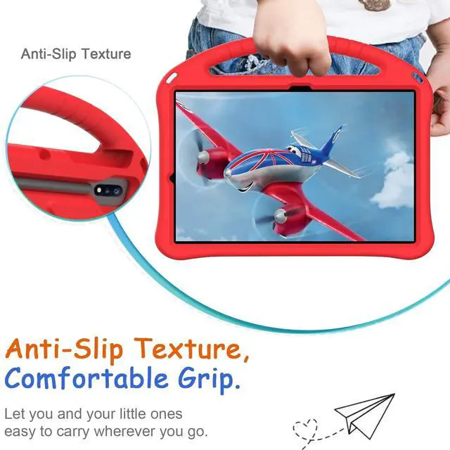 Features: Shock ProtectionMade of ultra-light, skin-friendly, safe and non-toxic foam material, protects your tablet from daily bumps and scrapes. Precise CutoutsCustomized openings allow to access to all ports, buttons and cameras without removing the case. Top HandleAnti-slip and comfortable grip handle is great for outdoor activities, little hand can also easy to carry it anywhere. Stable StandBuilt-in 2 foldable bases to prop your tablet up on the desk for hands-free horizontal viewing or typing.