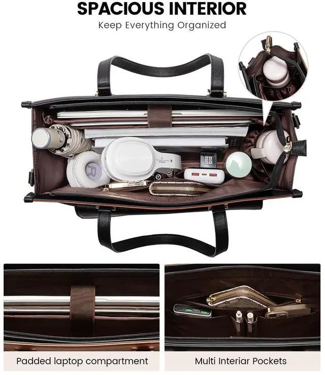 Women: Designed with 12 pockets, including a separate padded compartment that can accommodate a laptop(up to 17.3" ) and tablet, and can also store A4 files, binders, pens and other daily office supplies, this women's briefcase laptop bag ensures you are always prepared. The generous capacity accommodates a 40 oz water bottle, making it a perfect companion for work, travel, or any day on the go ^^