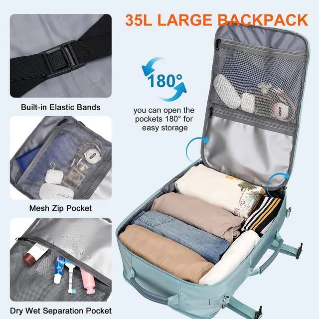 Size: 12.4 inches (L) x 8.5 inches (W) x 18 inches (H). The main compartment of this carry on personal item backpack is designed with a convenient 180 flap opening, making it easy to pass through security checks. It meets the requirements of most airlines, making it an ideal choice for your trip. ^^ Shoe Compartment and