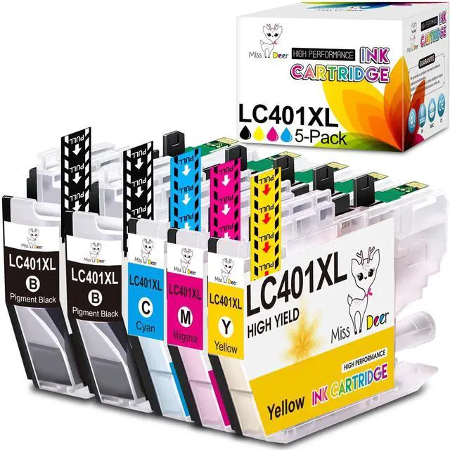 : Miss Deer lc401xl ink cartridges for Brother printer can be used for copy paper and photo paper. Specially formulated mfc-j1010dw ink cartridges make sure to print crisp documents and life-like photos. Sharp and smooth, Vibrant color, Prevents