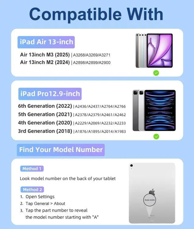 Compatibility: This keyboard case compatible with iPad Air 13 inch (M3) 2025 (Model: A3268, A3269, A3271), Air 13 inch (M2) 2024 (Model: A2898, A2899, A2900). Compatible with iPad Pro 12.9 inch 6th