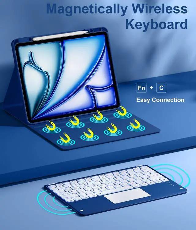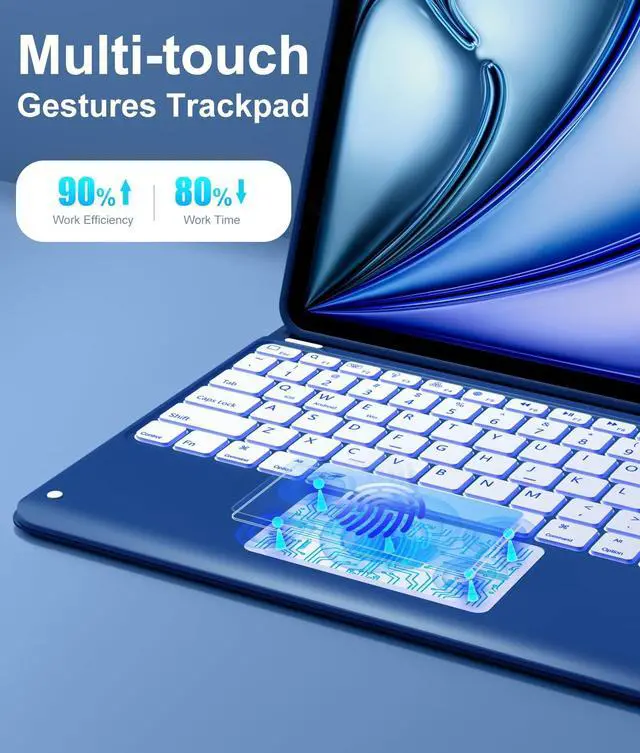 Multi-Touch Gestures Trackpad: This for iPad Air 13 inch case with keyboard integrated multi-functional touchpad. Use a trackpad for precision tasks, like editing a spreadsheet, browsing the web, and managing applications. Scroll, swipe, and zoom effortlessly, do not need a mouse. The responsive and intuitive trackpad enhances your efficiency ^^