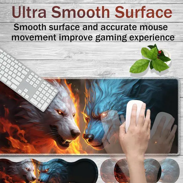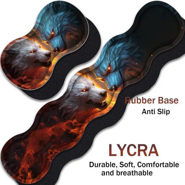 Perfect Size Large expansion mouse pad ( 31.5 x 11.8 inches), keyboard wrist rest support ( 17.32 x 3.7 inches), mouse wrist rest ( 6.8 x 3.7 inches), and coaster ( 3.93 x 3.93 inches) fit a full-size keyboard and mouse, providing plenty of space for professional gaming or office work. ^^ Ergonomic design With soft breathable fabric and comfortable memory foam design, the wrist is lifted, the wrist is raised into position, and the wrist pain relief. It prevents unnecessary wrist fatigue and injury. ^^ Non-slip base design Soft and dense non-slip natural rubber base can secure the table firmly.