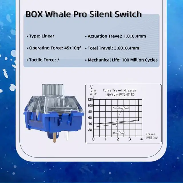 Zhouwang Kailh Box lslet Pro Silent Switches,Deep Sea Silent Linear 3-Pin 45gf Waterproof Dustproof Mechanical Keyboard Switches(lslet Linear,108Pcs)