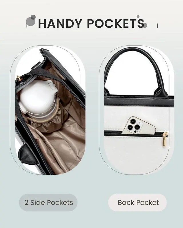 That's why our laptop purse for women is equipped with a detachable shoulder strap for hands-free convenience, and sturdy handles for a quick grab-and-go, ensuring a comfortable commute without compromising on style. ^^ Accessorize Smartly Never lose your keys or earbuds again. The accompanying pouch keeps small items secure and accessible, doubling as a chic clutch for your coffee runs. It's all about making your day smoother. ^^ Durable Craftsmanship Constructed with premium synthetic leather and meticulous stitching, our tote bag for women withstands the daily grind. Invest in a briefcase for women thats as resilient as you are, promising longevity and durability through your busy schedule.