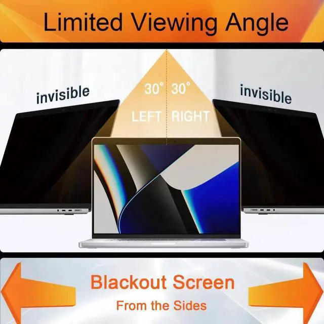 ^^ SUPERIOR PRIVACY: Limited viewing angle narrows the field of vision to +/- 30 degrees, facing the screen can see, but off to the side can only see a darkened screen, this macbook pro privacy screen keeps the information on your screen private and blacks out your laptop screen to any curious onlookers.