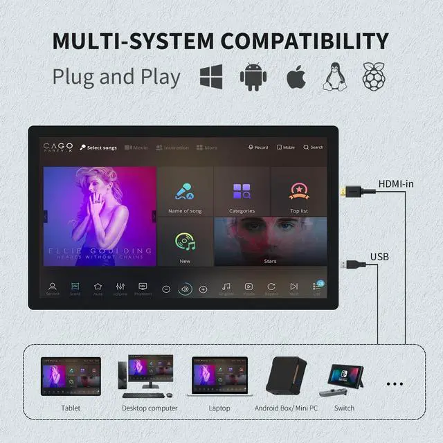 Use & Wide Compatibility: function of touch can work with Win XP/7/8/10/11, Mac os, Android, Linux, Raspberry Pi, plug and play by USB cable, also have VGA & HD-MI input ports, built-in speaker and 3.5 mm Audio jack ^^