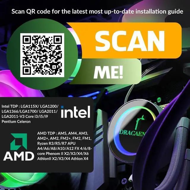 ^^ UNIVERSAL INTEL & AMD COMPATIBILITY Wide socket support including Intel LGA115X/ LGA1200/ LGA1366/LGA1700/ LGA2011/ LGA2011-V3 Core i3/i5/i9 Pentium Celeron and AM5, AM4, AM3, AM2+, AM2, FM2+, FM2, FM1, Ryzen R3/R5/R7 APU A4/A6/A8/A10/A12 FX 4/6/8- core Phenom II X2/X3/X4/X6 Athlon II X2/X3/X4 Athlon X4, making it a versatile cooler for most modern CPUs.