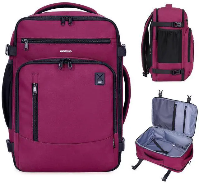 • SAY NO TO BAGGAGE FEES: The ECOHUB 25L Carry On Bag is perfectly sized to meet United Airlines' personal item requirements. Measuring 17" x 10" x 9" and weighing just 1.6 lbs, it fits neatly under the seat. Its also compatible with Spirit, Frontier, EasyJet and many other airlines. (Patent Pending)