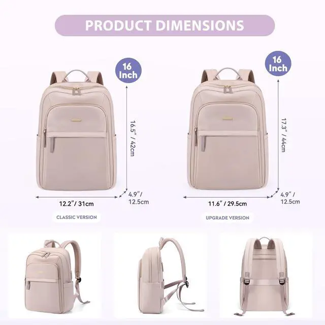 Backpack Dimension 29.5 *44* 12.5CM / 11.61 * 17.32 * 4.92 inch ^^ MultifunctionThis travel backpack has a multi-layer design and can hold multiple items. Separate laptop compartments provide secure storage for your devices. The main compartment includes a zippered opening and two open pockets for easy storage. In addition, there is a front zipper pocket, two side pockets, and a luggage strap in the back. With versatile pockets, a laptop backpack can be carried to meet the needs of short trips. ^^ Upgraded FabricDurable and waterproof, made of splash-proof Oxford fabric and premium superfiber synthetic leather, this travel backpack ensures your items stay dry and prevents any leaks or moisture from affecting your other items, and this laptop bag can withstand daily wear and tear, reinforced stitching ensures long-lasting durability.