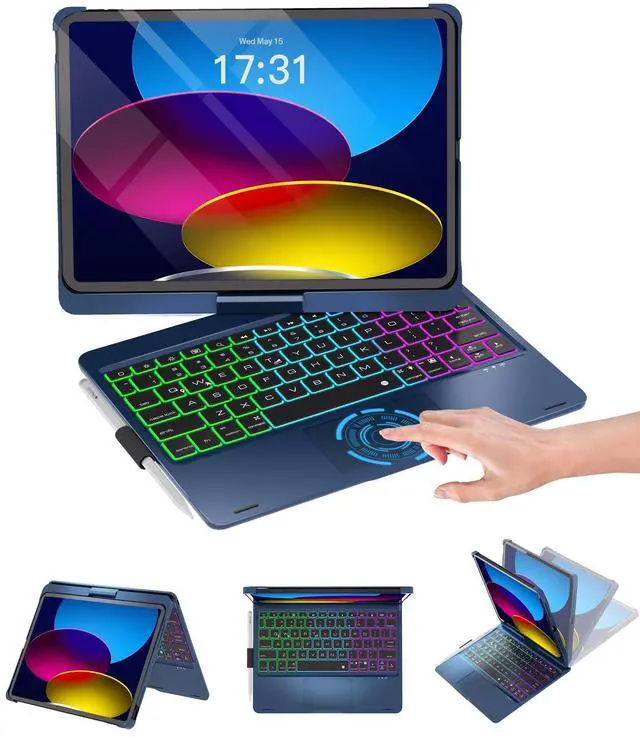 Baisla iPad 10th Generation Case with Keyboard 10.9"& iPad 11th (A16) & iPad Air 11 (M3/M2), Multi Trackpad, 360 Swivel & Rainbow Backlit for iPad Air 5th/4th,iPad Pro 11 4th/3rd/2nd/1st - Blue