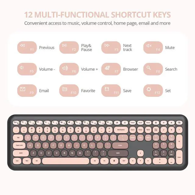 Multimedia Hotkeys: Equipped with 12 multimedia function keys, this cute colorful keyboard allows easy control over music, video playback, and web browsing, enhancing productivity and convenience ^^