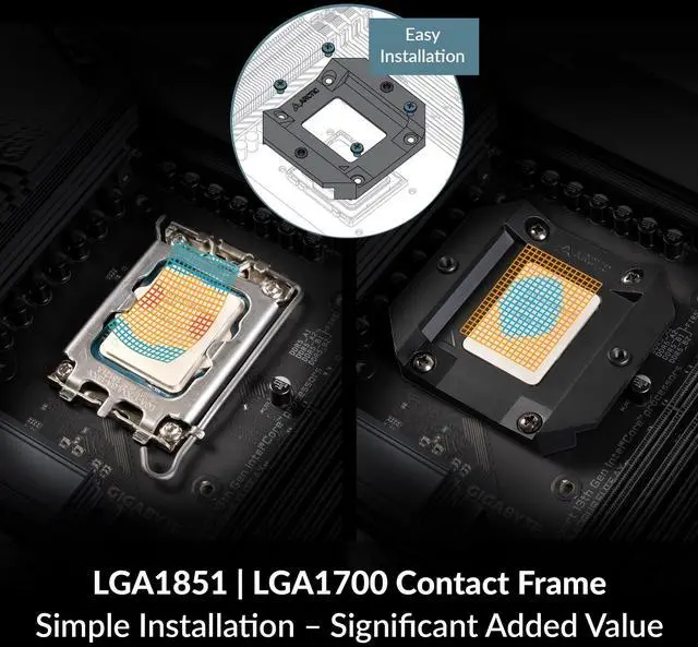 CONTACT FRAME FOR INTEL LGA1851 AND LGA1700: Improved contact pressure distribution through Intel mounting frame for efficient heat transfer thanks to even CPU contact surface ^^