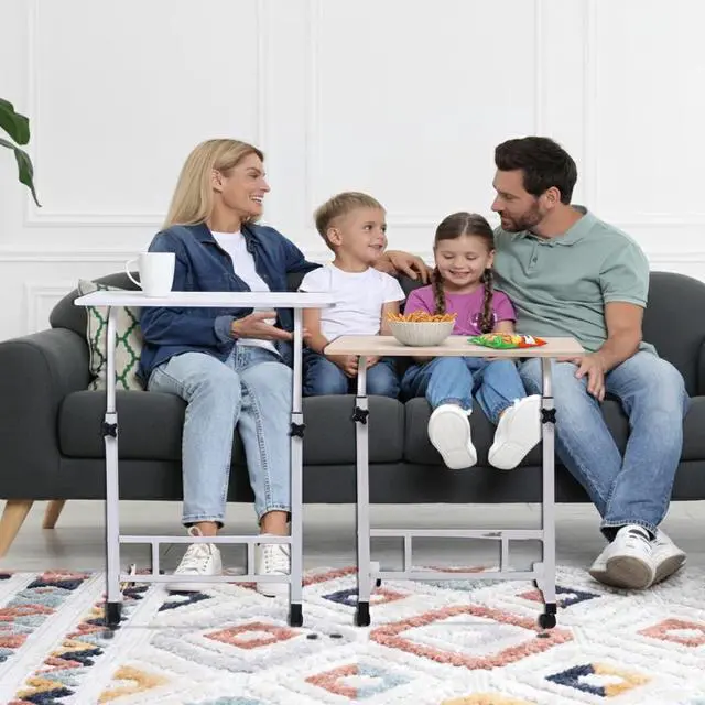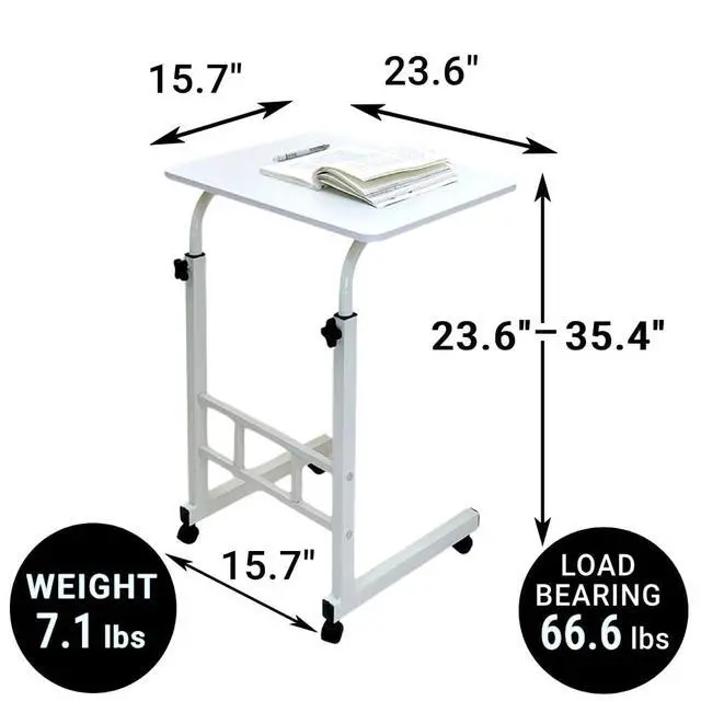 Premium Materials Laptop Desk: Rolling table is made of thickened steel and MDF wood, bearing 66 lbs; it makes cleaning up any messes easy with a simple wipe, durable and has strong load capacity ^^ Height Adjustable in Wide Range for Kids /