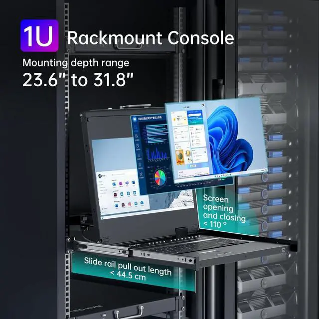 [Mount depth]: 23.6 - 31.8" [60-81cm]Mounts into 19-wide rack. ^^ This Rack KVM Switch support