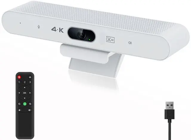 No drivers or software needed! Its compatible with Windows, Mac, and most conferencing software like Zoom, WebEx, and Microsoft Teams. Start your calls or live streams with no hassle, making it suitable for users of all levels ^^ Remote Control with 5X Digital Zoom Take control of your view with the included remote, allowing you to zoom in or out, mute the microphone, adjust speaker volume, and even preset the camera angles. This feature is ideal for adjusting the view and sound without interrupting your meeting ^^ Versatile Mounting Options for Any Setup Our 4K webcam is designed to be mounted on monitors, laptops, TVs, or even tripods, making it flexible for any space.