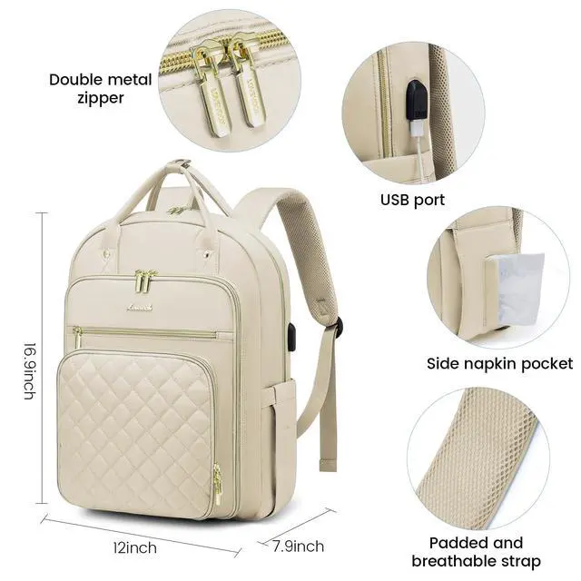 Lightweight Womens Backpack: Only 1.73 lbs. External dimensions of the backpack purse: 16.9 x 12 x 7.9 inches (H x L x W). Can hold laptops of 15.6 inches and below. Perfect as a work, college, and travel backpack ^^