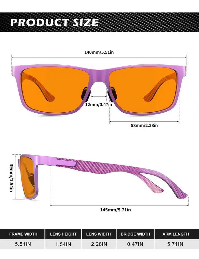 ^^ Premium Temple Material: With superior Al-Mg and carbon fiber composite temple, this type of blue light blocking glasses for men is ultra-light than pure metal frame, also more sturdy. No more worries about broken temples. As more suitable for anyone who often work or play games by the computer, do not miss this pair of practical and classic blue blocker glasses. ^^ Take Care of