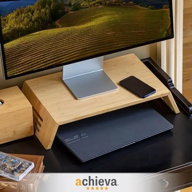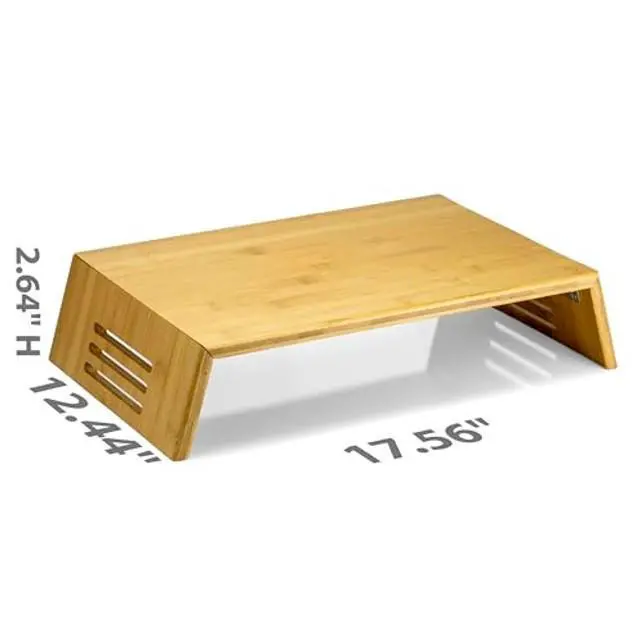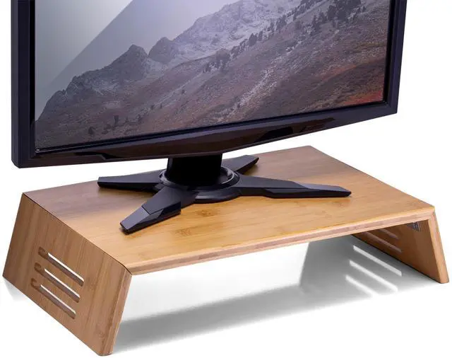 Raise monitor and be able to store items underneath. Strong and Durable long lasting material. Improve posture by having monitor at proper eyelevel. Modern design that has a natural look in a large variety of spaces. No assembly needed.
