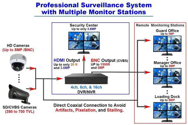 ^^ 2. Keeps video looking its best by preventing blurry or pixelated images. Preserve original high video quality without artifacts, signal loss, or distortion caused by digital processing and compression through a Digital Video Recorder or Distributor. ^^ 3. Super HD 5MP security monitors with BNC inputs allows them to be connected directly to the new super HD up to 5MP/2592x1944 resolution cameras for the much clear and more accurate video feed. And it is 10 times higher than the Standard Definition ( 0.46MP /960H, 0.3MP /CVBS or VGA) BNC resolution from Normal CCTV/security monitors.