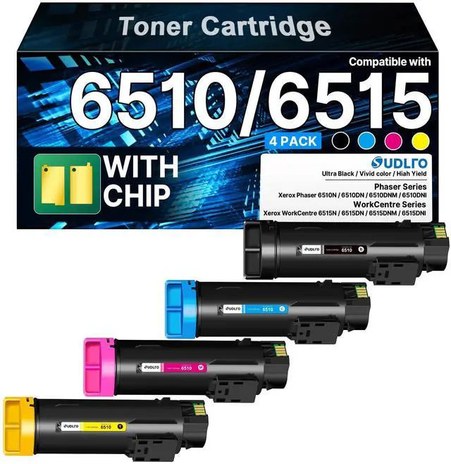 ^^ Package Contents: Phaser 6510 toner Workcentre 6515 toner 4 pack contains 1 Black of phaser 6510 workcentre 6515 toner, 1 Cyan of 6510 6515 toner, 1 Magenta of 6510 6515 Toner, 1 Yellow of 6510 6515 toner ^^ compatible phaser 6510 toner workcentre 6515 toner replacement for Xerox phaser 6510 workcentre 6515 Xerox Phaser 6510dni Workcentre 6515dni toner cartridge