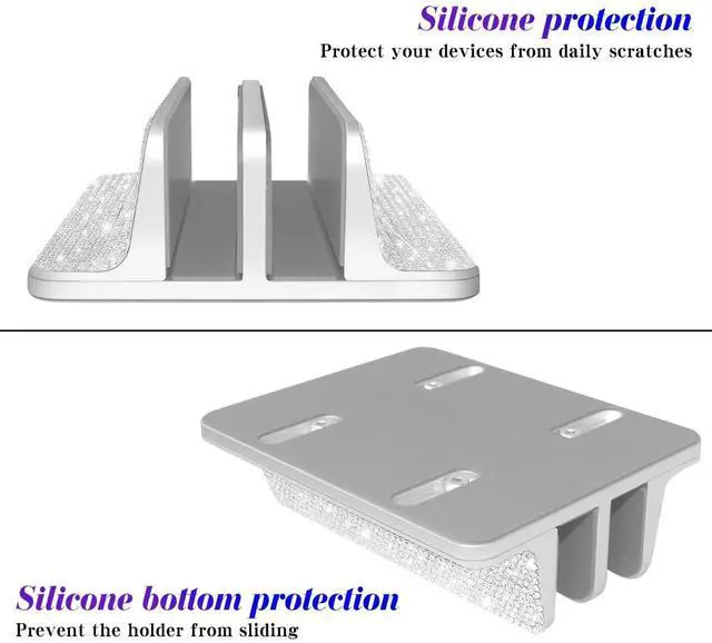 Erolagomat Bling Vertical Laptop Stand, Double Desktop Stand Holder with Adjustable Dock (Up to 17.3 inch),Compatible with All MacBook/Surface/Samsung/HP/Dell/Chrome Book (Silver Glitter Rhinestones)